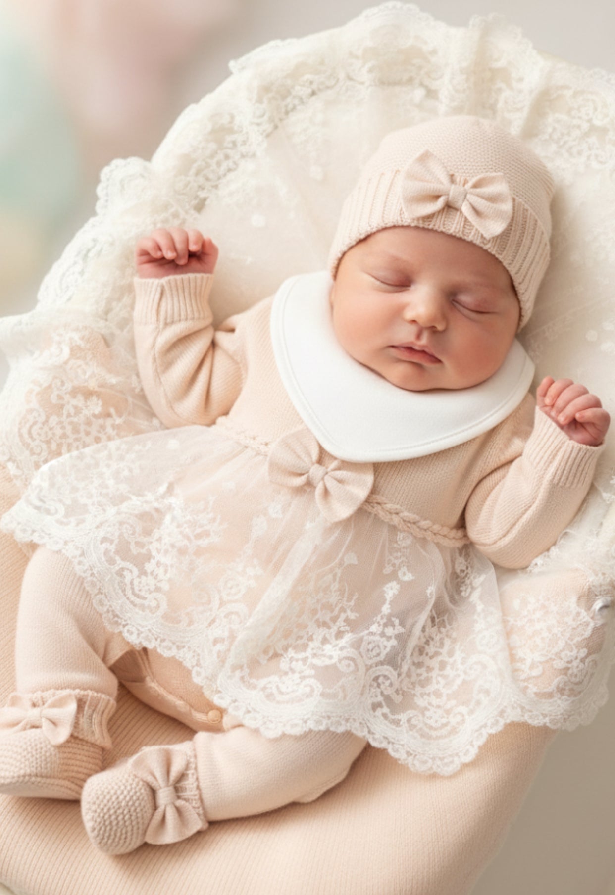 Kız Bebek Yenidoğan Battaniyeli Hastane Çıkışı Seti – Krem, 0–3 Ay, Kutulu