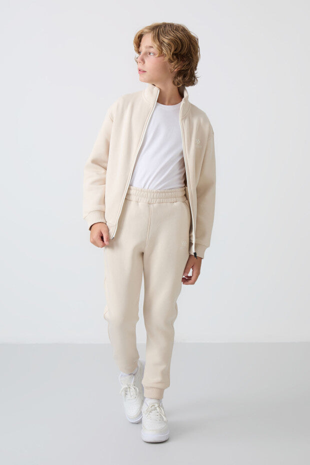 Bej Dik Yaka Erkek Çocuk Eşofman Takımı