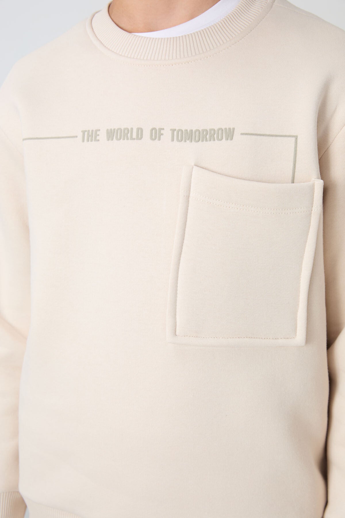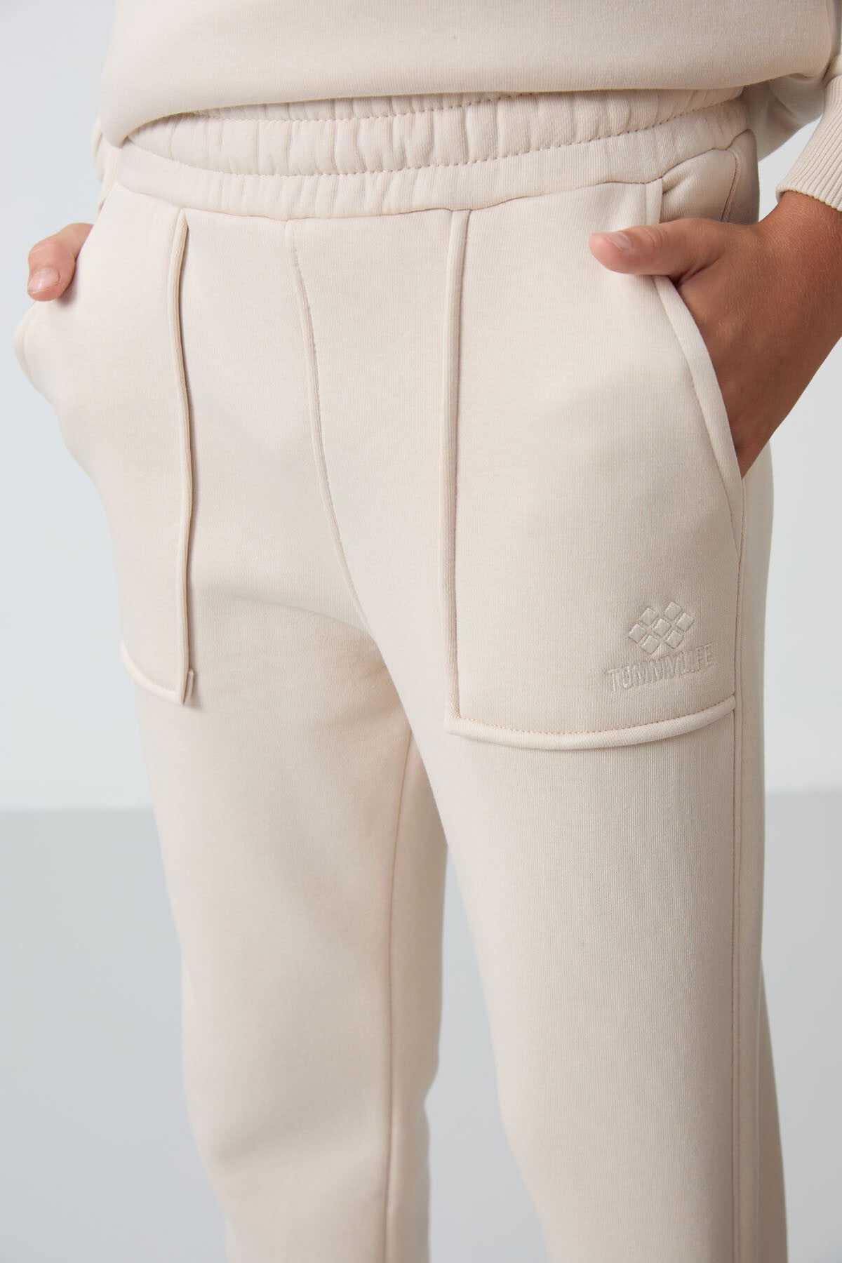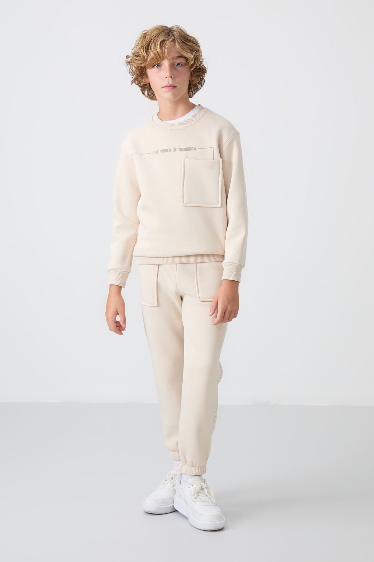 Bej Rengi Pamuklu Erkek Çocuk Eşofman Takımı
