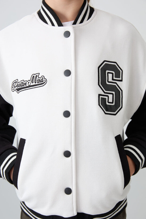 Güçlü duruşunu stiline yansıt! Beyaz rengi ve “Stronger than Yesterday” baskısıyla öne çıkan bu kolej ceket, kız çocuklarının enerjik ruhuna tam uyum sağlıyor. Yumuşak kumaşı ve rahat kesimi sayesinde gün boyu konfor sunarken, modern tasarımıyla her kombine taze bir hava katıyor. Çıtçıtlı kapaması ve ribanalı detaylarıyla spor şıklığın yeni favorisi olacak. Hem okulda hem hafta sonu gezilerinde güçlü stilini konuşturmanın tam zamanı!