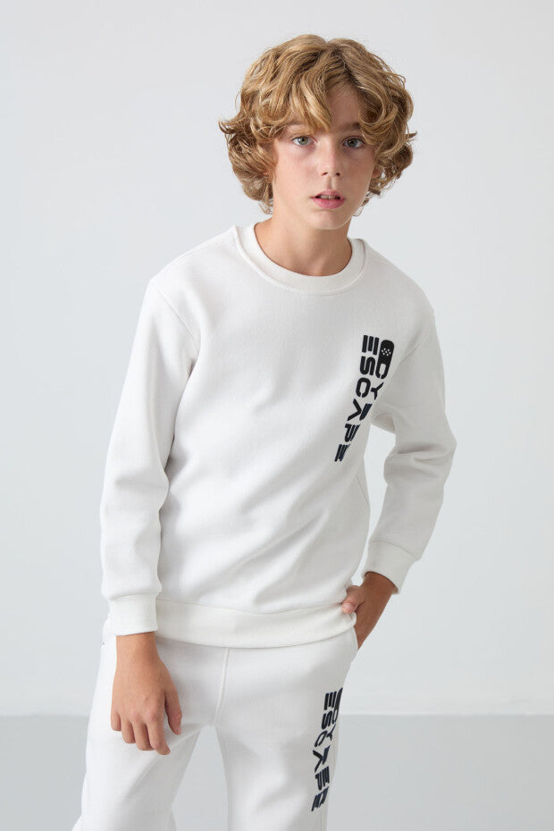 İçi Pamuklu Ekru Erkek Çocuk Eşofman Takımı