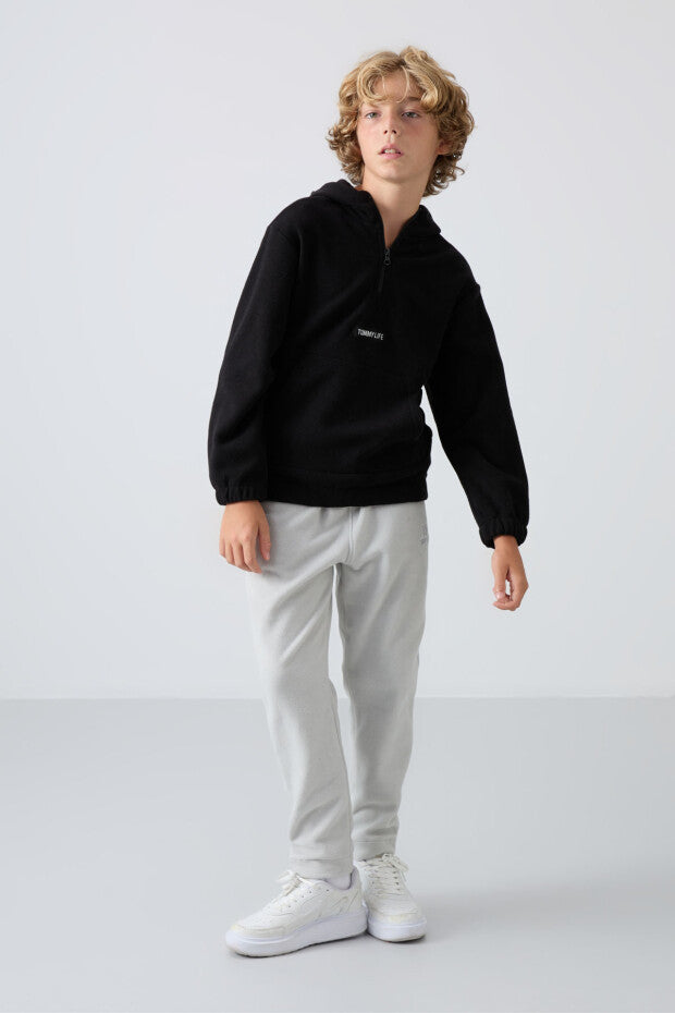 Taş Rengi Düz Paça Polar Erkek Çocuk Eşofman Takımı