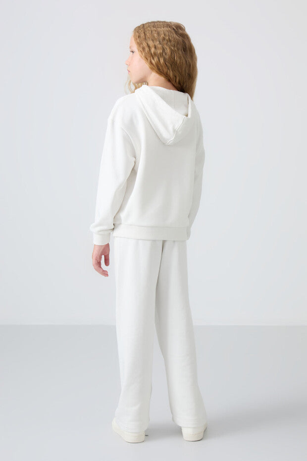Ekru Kapüşonlu Kız Çocuk Eşofman Takımı