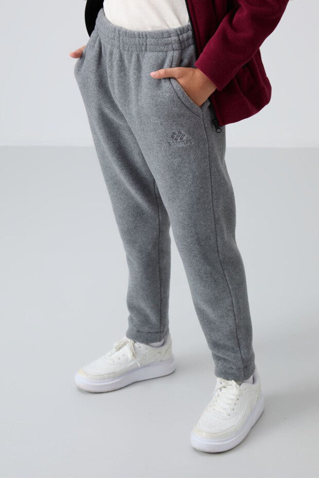 Gri Düz Paça Polar Erkek Çocuk Eşofman Takımı