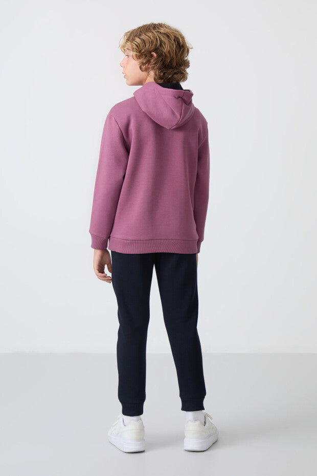 Gül Kurusu Kapüşonlu İçi Pamuklu Erkek Çocuk Eşofman Takımı – Minik Maceraperestlere Özel!