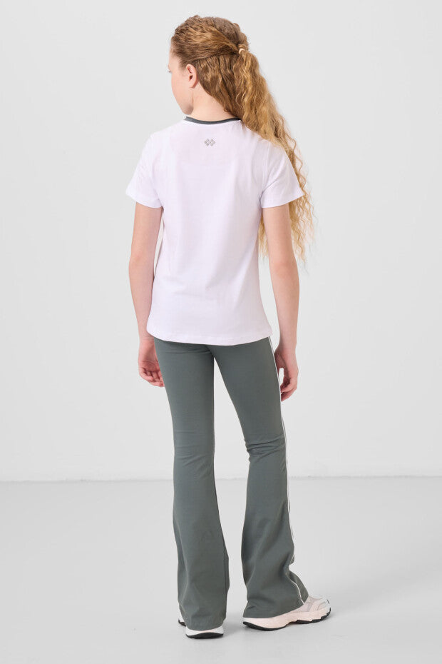 Kız Çocuk Haki İspanyol Paça Tayt ve Beyaz Tişört Takımı (7-15 Yaş)