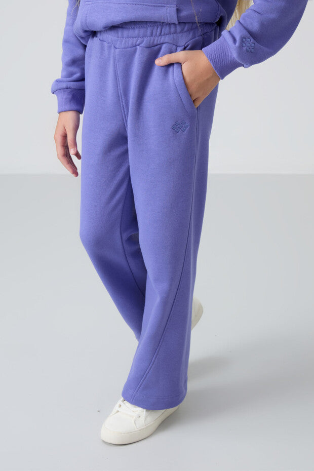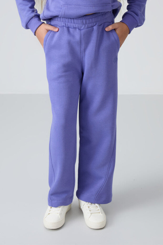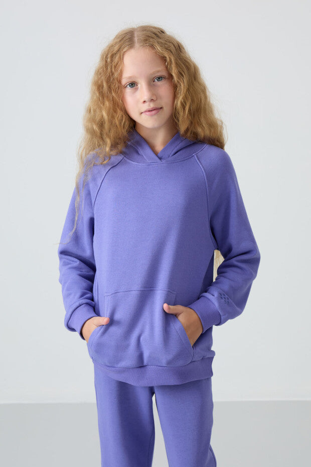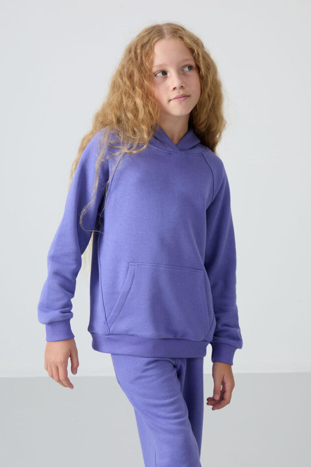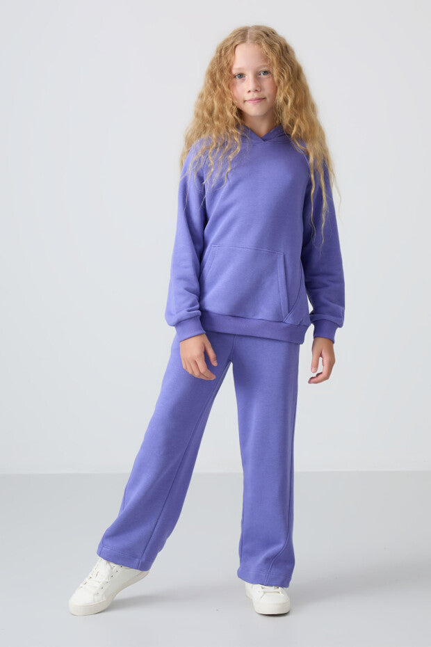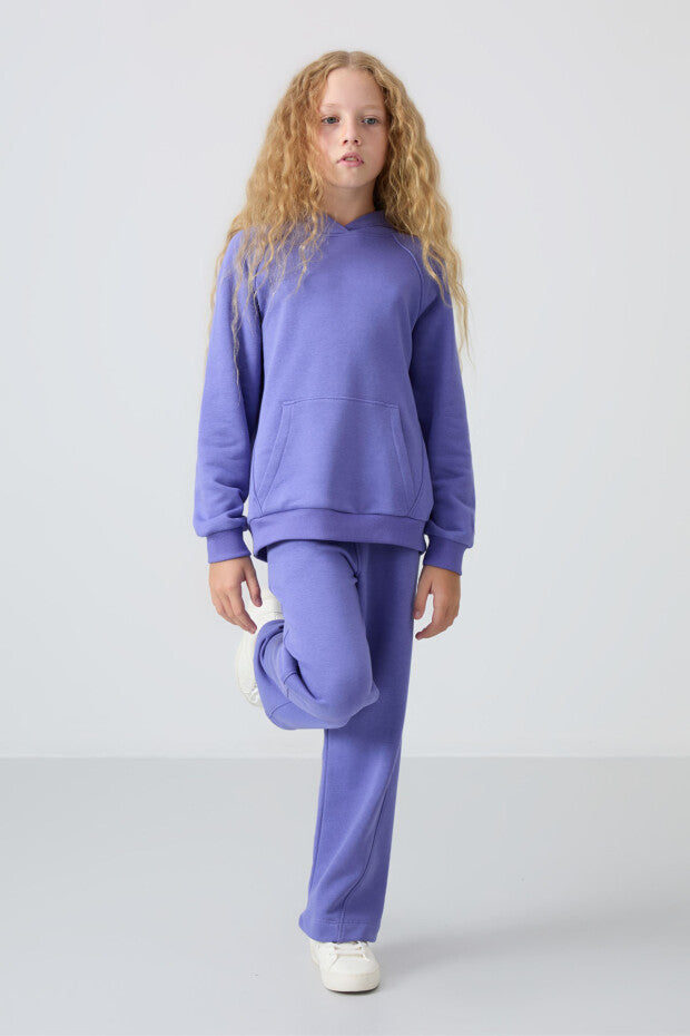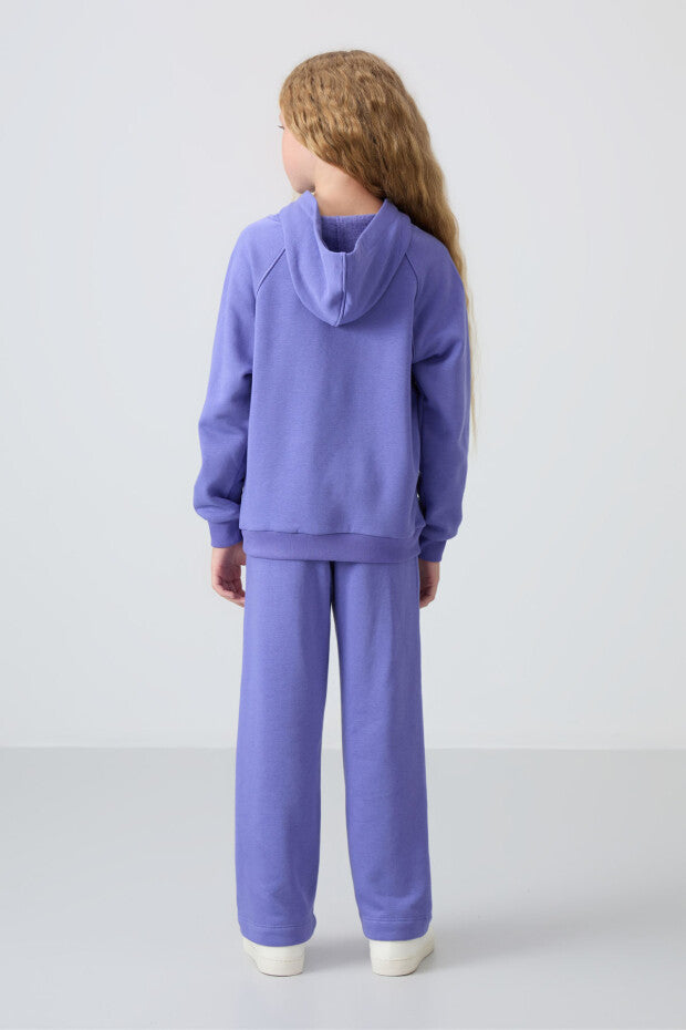 İçi Pamuklu Kapüşonlu Mor Kız Çocuk Eşofman Takımı