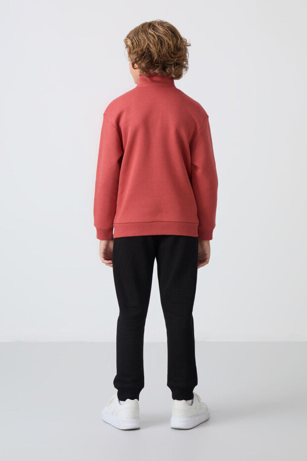 Minik beylerin tarzı bu takımda gizli! Kiremit renginin sıcak enerjisiyle tasarlanmış fermuarlı üst, kolay giyilip çıkarılabilir yapısıyla pratiklik sunarken; siyah eşofman alt, her kombine uyum sağlayan zamansız şıklık sunar. İçi pamuklu yapısı sayesinde yumuşacık ve rahat, hareketli günlere ise tam uyumlu!