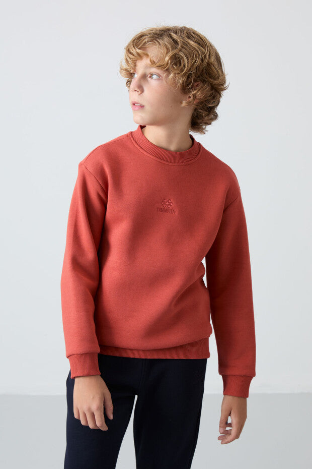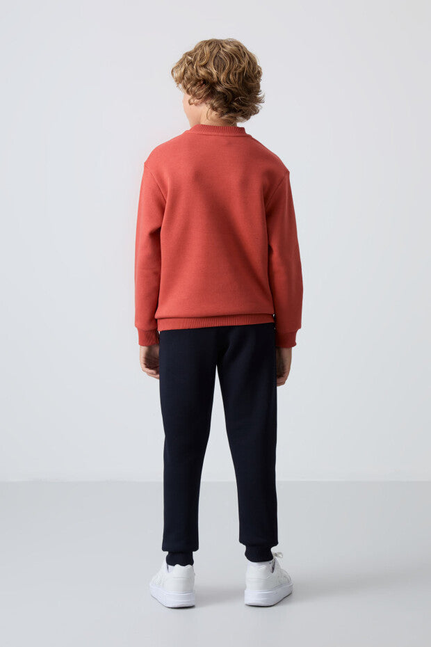 Erkek Çocuk Kiremit Rengi Sweatshirt & Lacivert Alt Eşofman Takımı