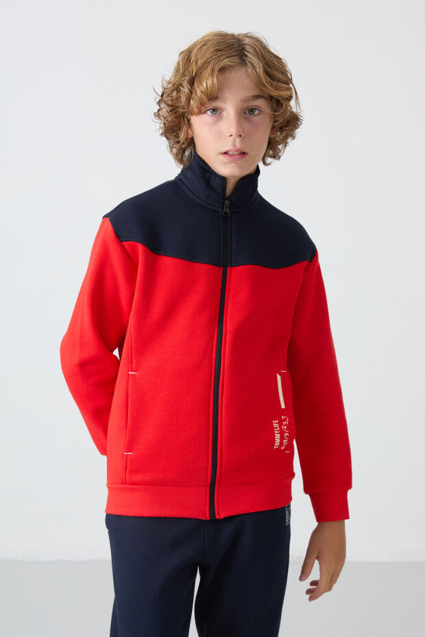 Erkek Çocuk Kırmızı Lacivert Geçişli Şardonlu Eşofman Takımı