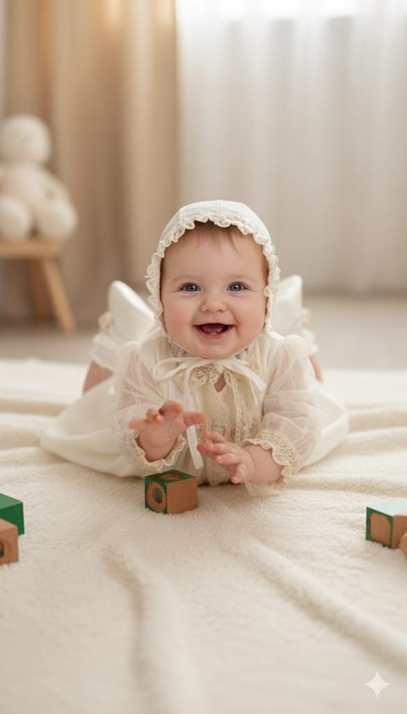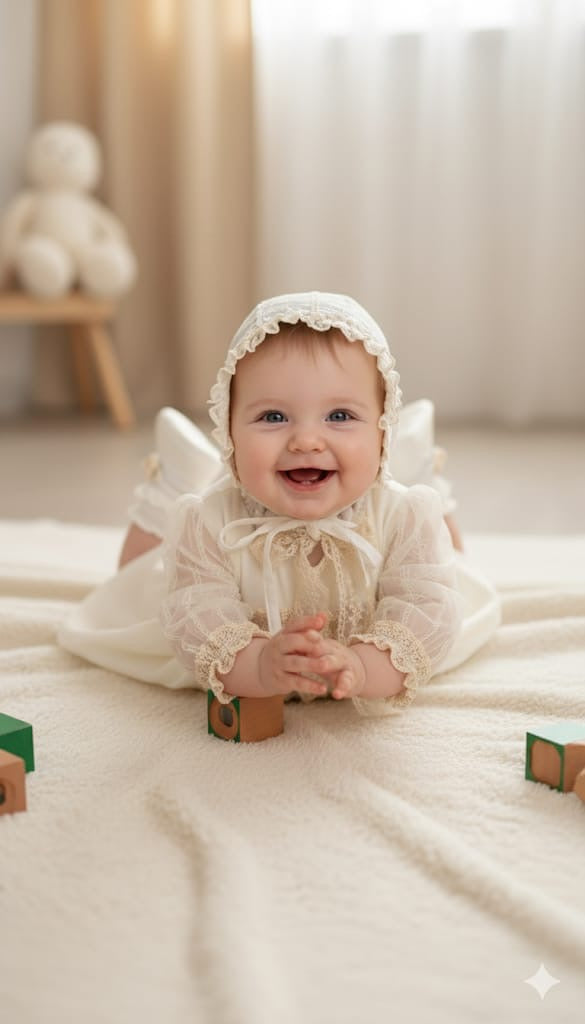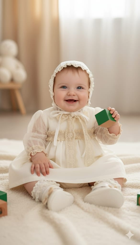 Bu zarif 0–3 ay kız bebek dantelli elbiseli 6’lı hastane çıkışı seti, bebeğinizin ilk günlerini unutulmaz kılmak için tasarlandı.