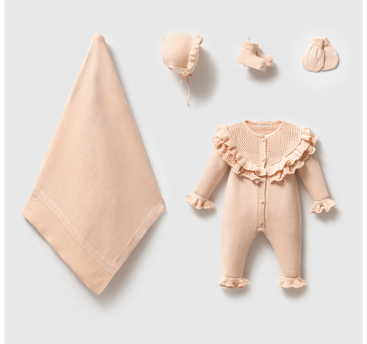 Kız Bebek Yenidoğan 5’li Triko Hastane Çıkışı Seti | Fırfırlı Yakalı | 0-3 Ay | Tulum, Battaniye, Şapka, Çorap, Eldiven 8259