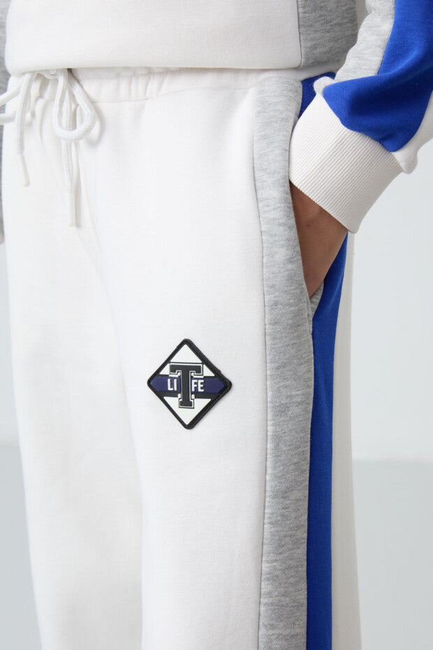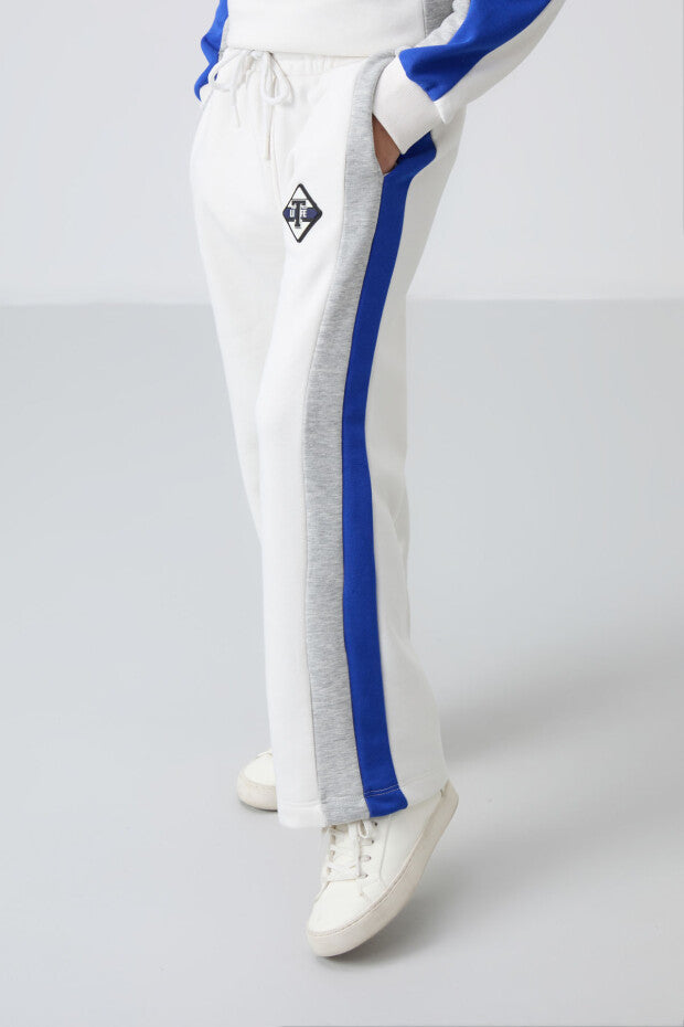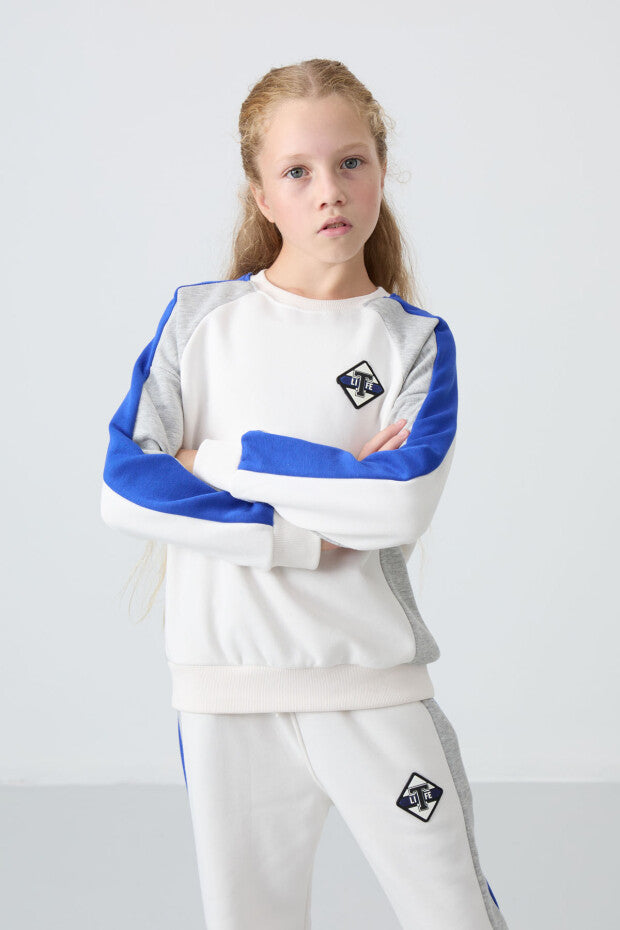 Kız Çocuk Ekru Üst Mavi-Gri Şeritli Eşofman Takımı