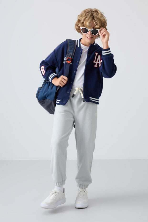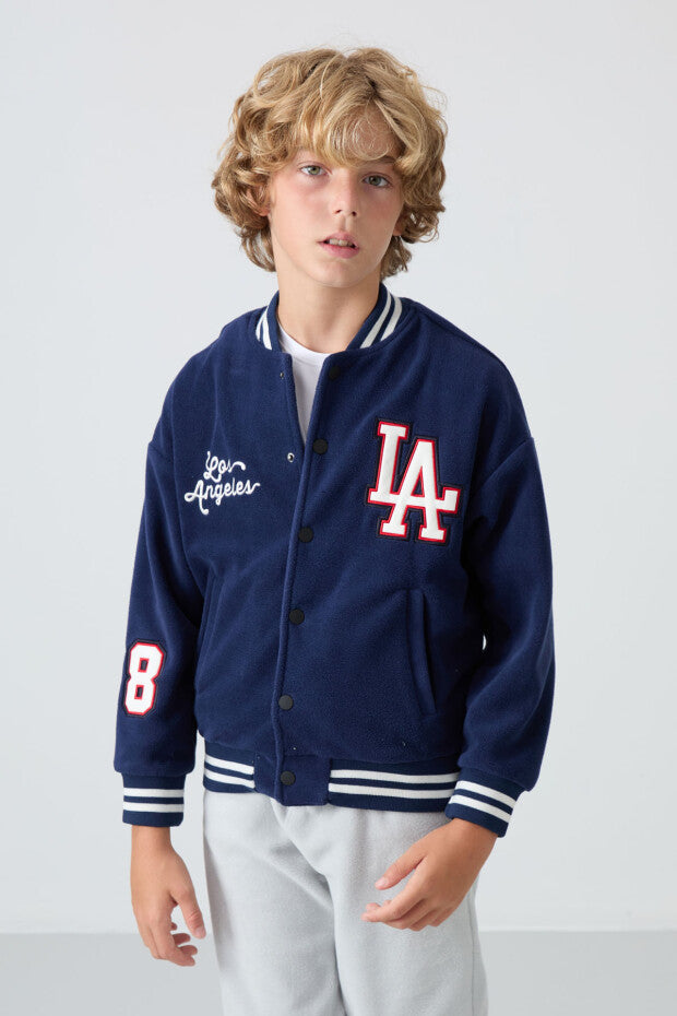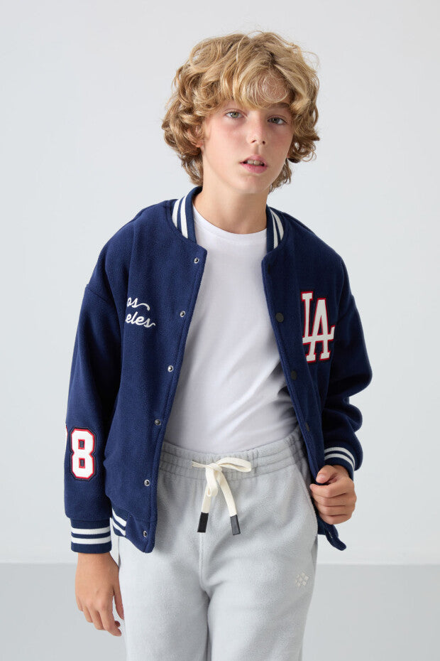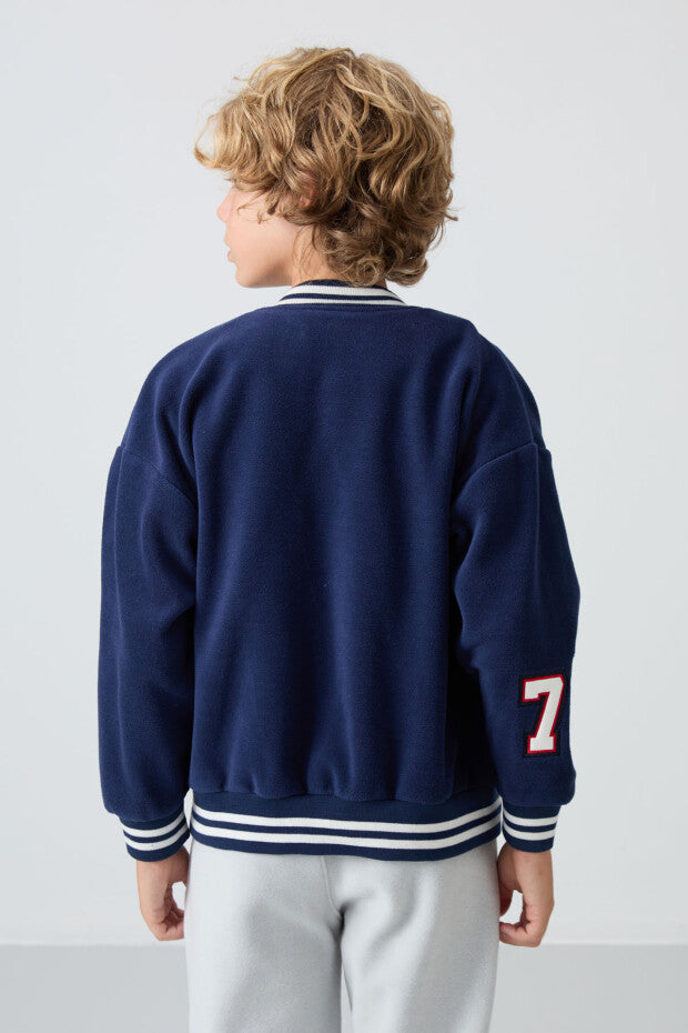 Erkek çocuk polar Lacivert rengi kolej ceketi, yumuşak dokusu ve sıcak tutan yapısıyla konforlu bir dış giyim parçasıdır. Polar kumaş sayesinde soğuk havalarda ekstra koruma sağlar ve hafif yapısıyla hareket özgürlüğü sunar.