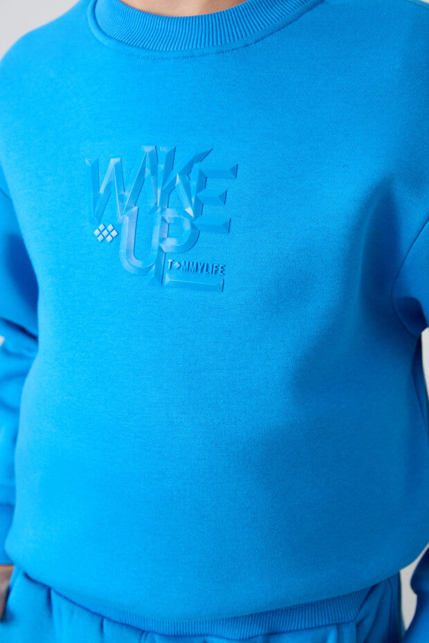 Mavi Pamuklu WakeUp Armalı Erkek Çocuk Eşofman Takımı