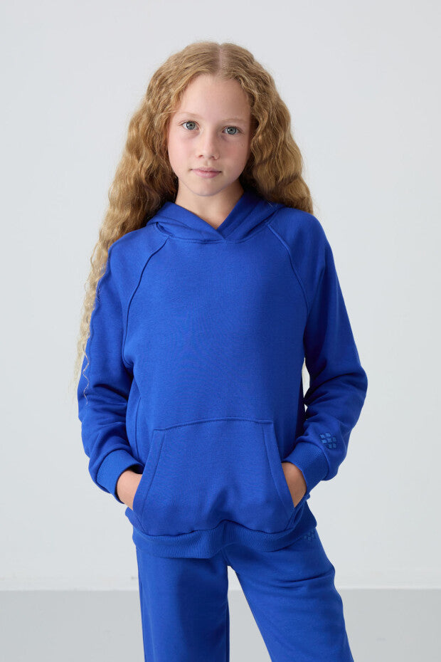 Saks Mavi Kapüşonlu Kız Çocuk Eşofman Takımı