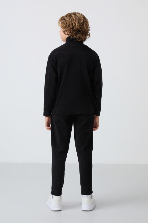 Siyah Dik Yaka Erkek Çocuk Polar Eşofman Takımı