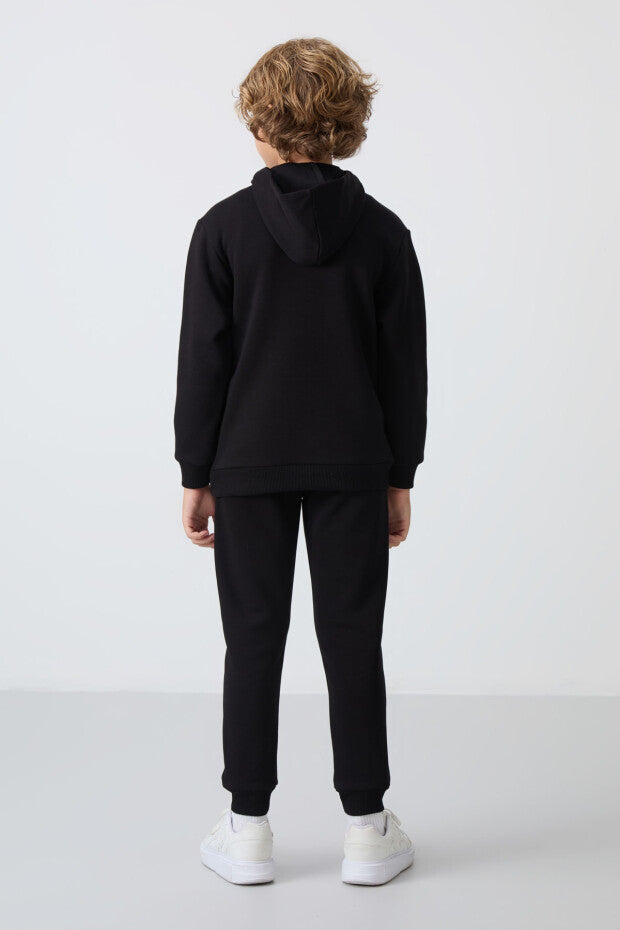 Siyah Kapüşonlu İçi Pamuklu Erkek Çocuk Eşofman Takımı – Tarz Sahibi Miniklere Özel!