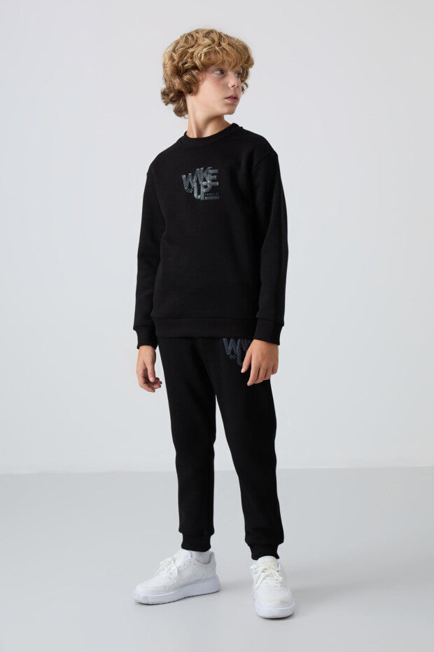 Siyah Pamuklu WakeUp Armalı Erkek Çocuk Eşofman Takımı