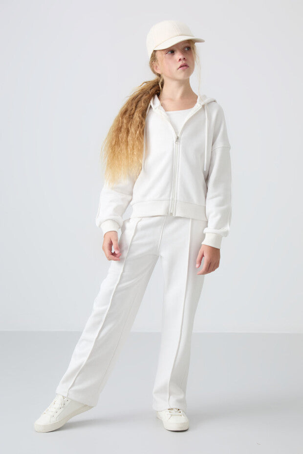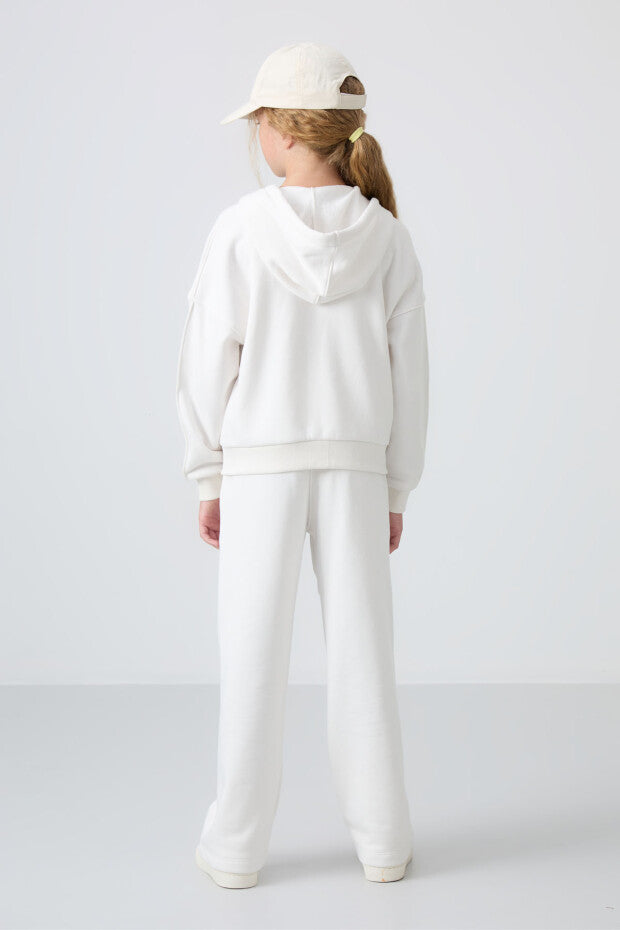 Tam Boy Fermuarlı Ekru Kız Çocuk Eşofman Takımı