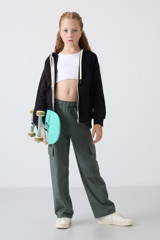 Tam boy Fermuarlı Kız Çocuk Sweatshirt Siyah