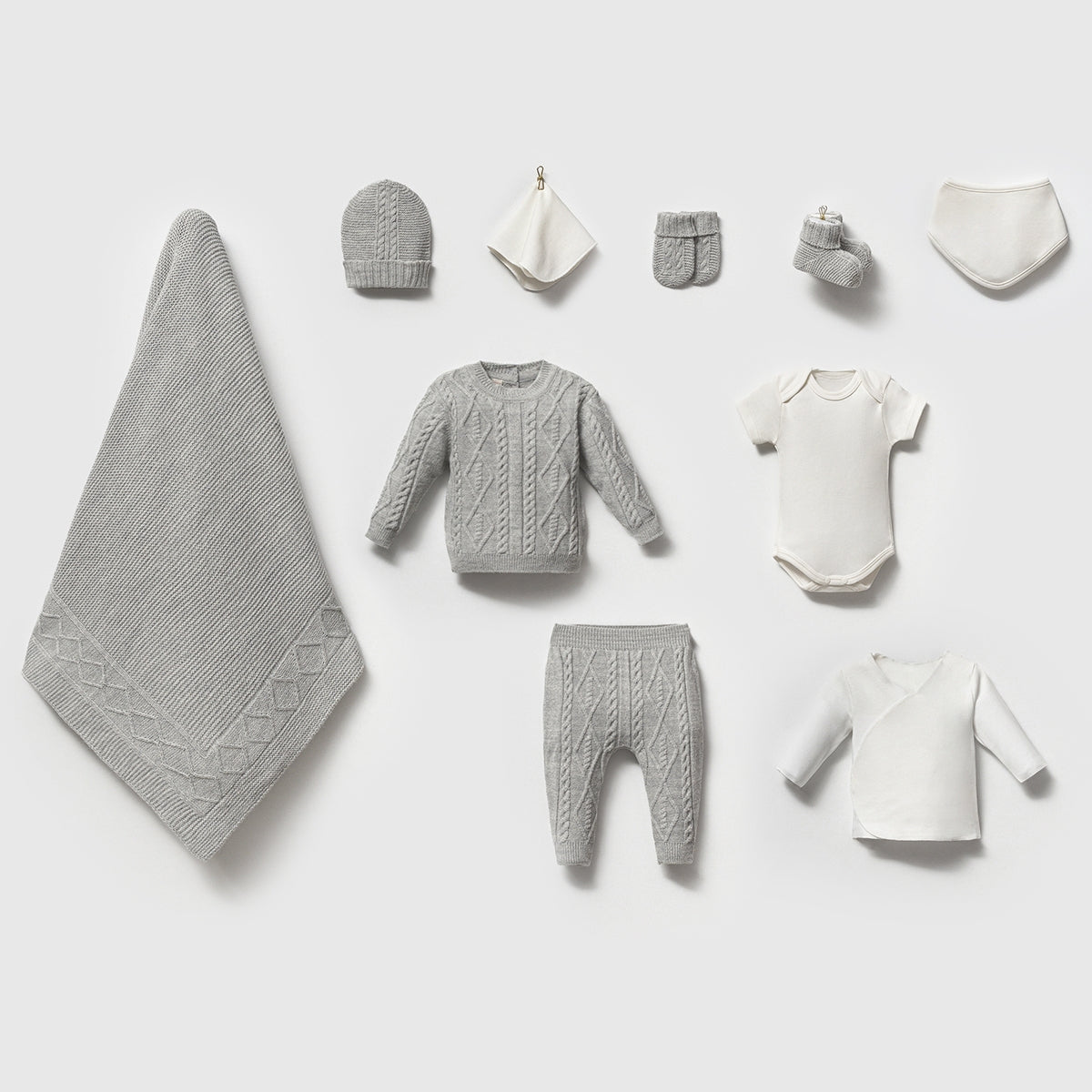 Unisex Gri Triko 10’lu Yenidoğan Seti – Kişiselleştirilebilir Hastane Çıkışı ve Hediye Seti 8369