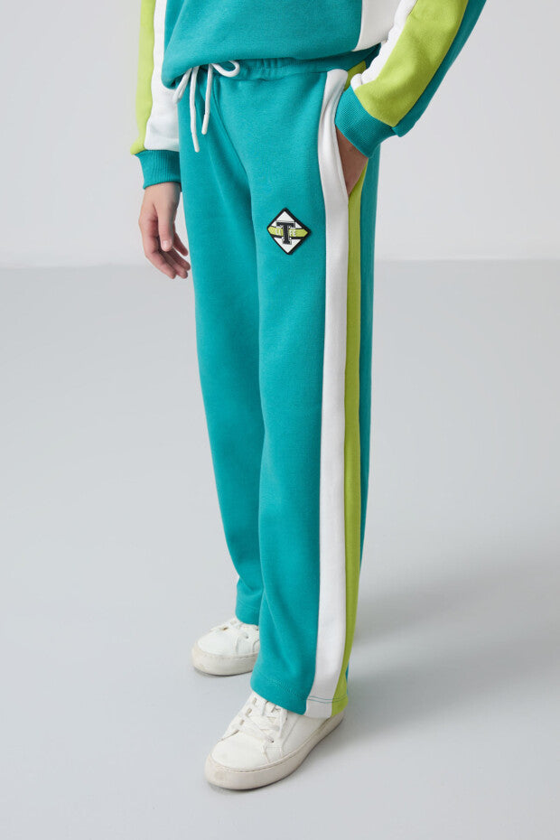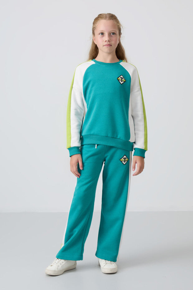 Yeşil Kolları Şeritli Kız Çocuk Eşofman Takımı